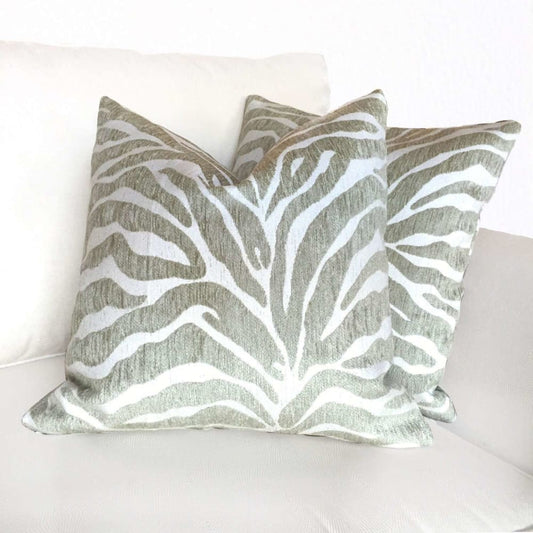 (CLEARANCE) Kravet 32081.3 Faux Tiger Animal Stripe Green Ivory Pillow Cover