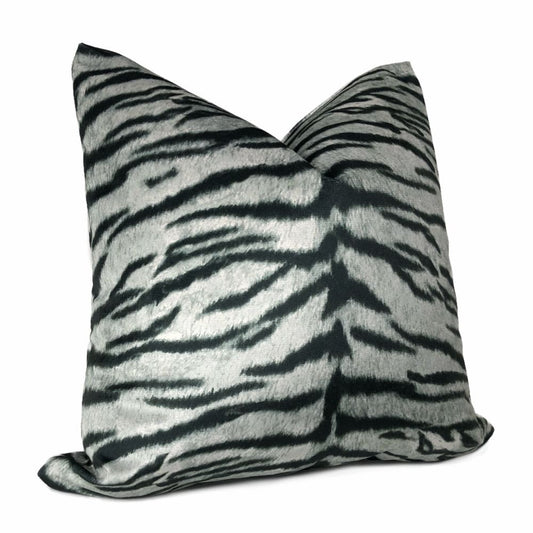 Magnificat Gray Black Tiger Stripe Velvet Pillow Cover (Fabric by the Yard available)