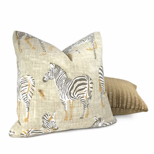 (CLEARANCE) Zebra Herd Beige Animal Safari Print Pillow Cover