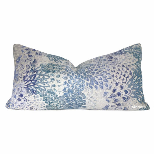 Robert Allen Feather Fans Floral Brocade Cobalt Blue Gray Pillow Cover