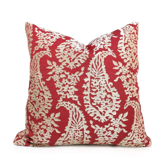 (CLEARANCE) Fabricut Napoli Lacquer Red Gold Paisley Floral Pillow Cover