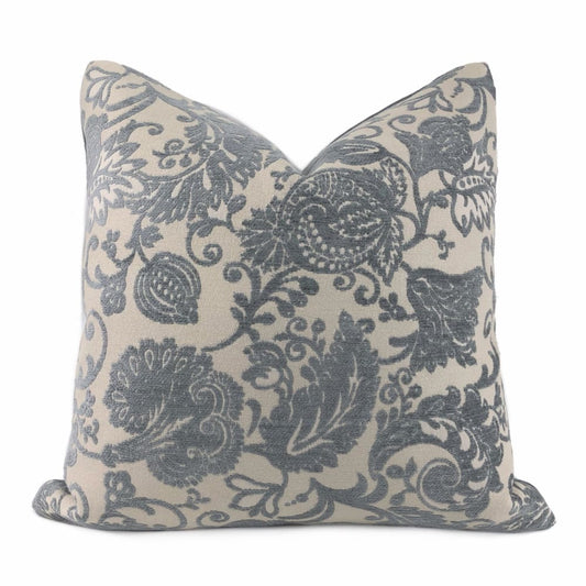 Charlotte Gray Blue Jacobean Floral Print Pillow Cover