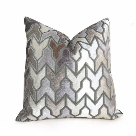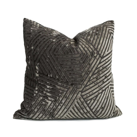 Cyrus I Gray Brown Cream Velvet Pillow Cover (Fabric by the Yard Available)