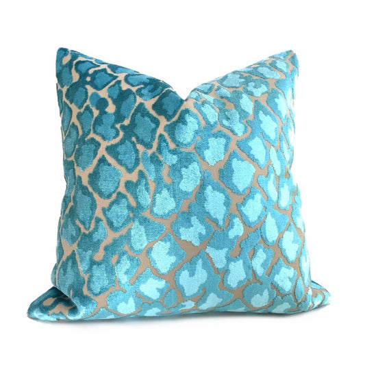 Coco Turquoise Blue Leopard Velvet Pillow Cover