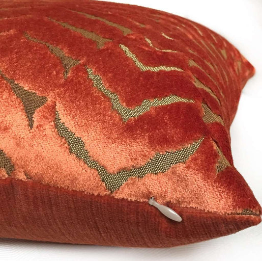(CLEARANCE) Robert Allen Magnetism Fire Opal Burnt Orange Italian Cut Velvet Pillow Cover