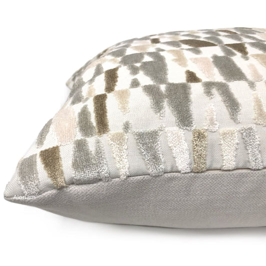 (CLEARANCE) Cyrus I Gray Brown Cream Velvet Pillow Cover (Fabric by the Yard Available)