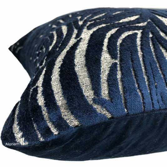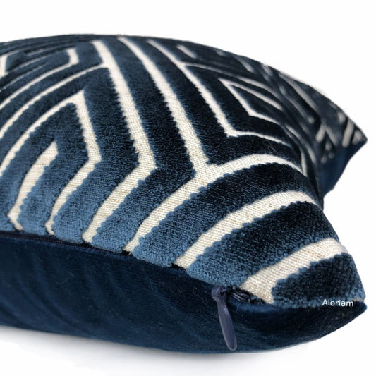 Alden Navy Blue Abstract Cut Velvet Pillow Cover