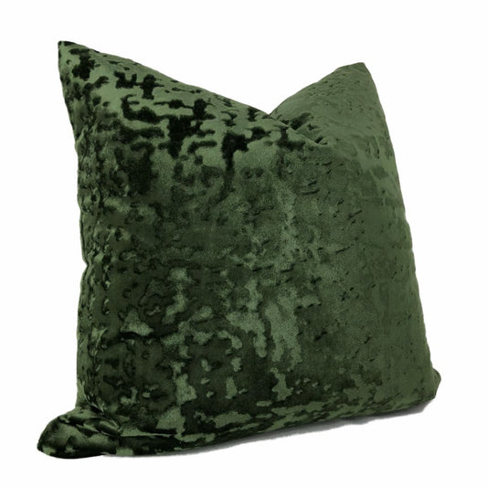 Kael I Dark Green Abstract Distressed Tonal Velvet Pillow Cover