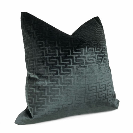 (CLEARANCE) Athena Gray Stone Greek Key Velvet Pillow Cover