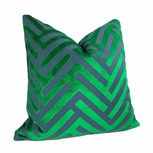 Euclid Green Blue Chevron Velvet Pillow Cover