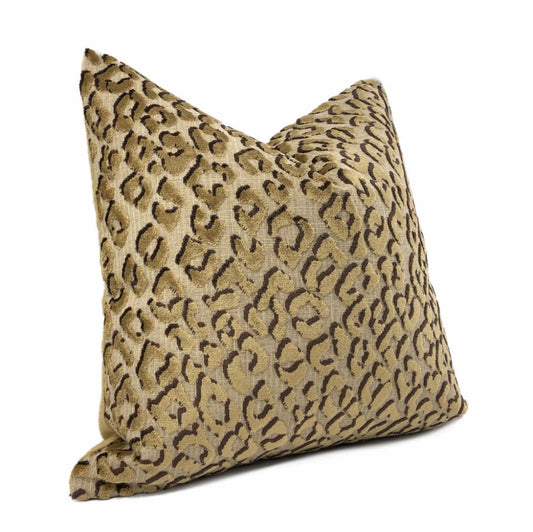 Aramis Gold Tan Leopard Spot Cut Velvet Pillow Cover