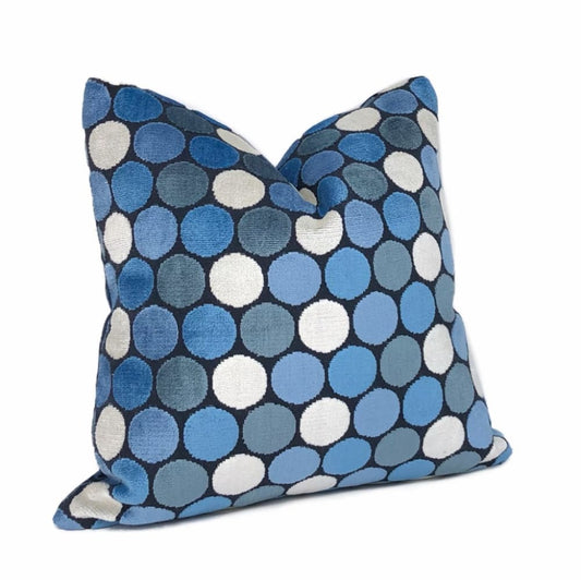 Bellini Large Blue Cut Velvet Dots Pillow Cover