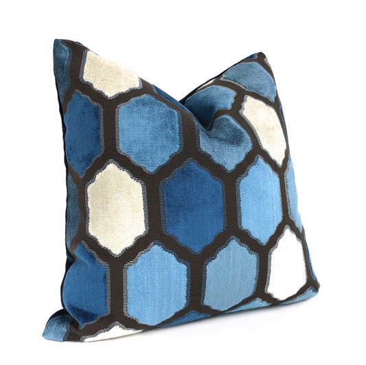 Dorsey Blue Geometric Tile Velvet Pillow Cover