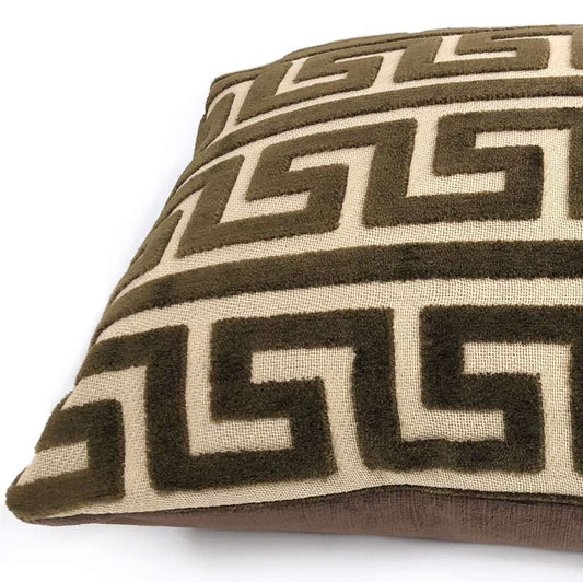 Centurion Greek Key Fretwork Taupe Bronze Cut Velvet Pillow Cover (Fabric by the Yard available)