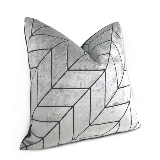 Leyland Silver Gray Diagonal Chevron Velvet Pillow Cover