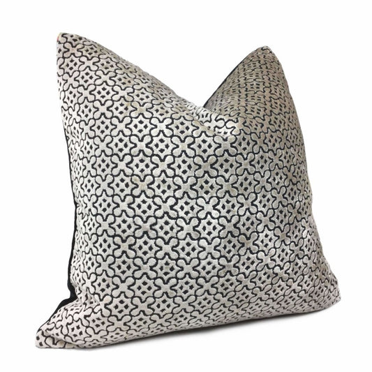 Black Libretto Velvet Pillow Cover with Metallic Silver Greek Key Trim