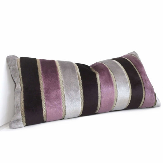Emilio Amethyst Purple Gray Wide Velvet Stripe Pillow Cover