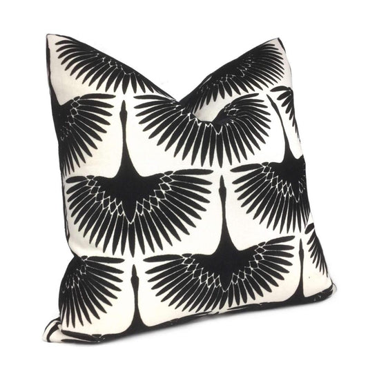 Genevieve Gorder Crane Flock Velvet Onyx Black White Pillow Cover