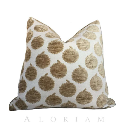 Robert Allen Plush Dotscape Velvet Dots Circles Major Brown Beige Pillow Cover