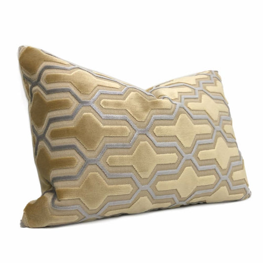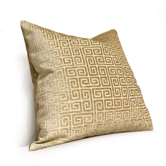 Robert Allen Plush Greek Keys Gold Sand Beige Velvet Chenille Pillow Cover