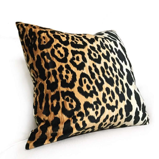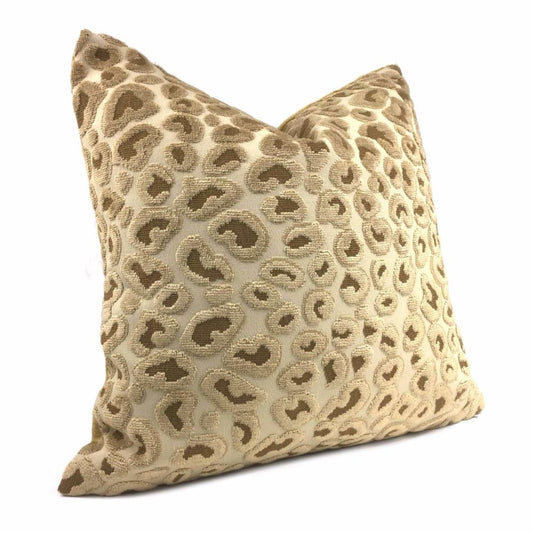 Tan & Black Large Leopard Faux Animal Skin Cotton Velvet Pillow Cover