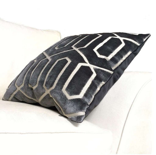 Robert Allen Bengal Lattice Charcoal Gray Geometric Italian Cut Velvet Pillow Cover