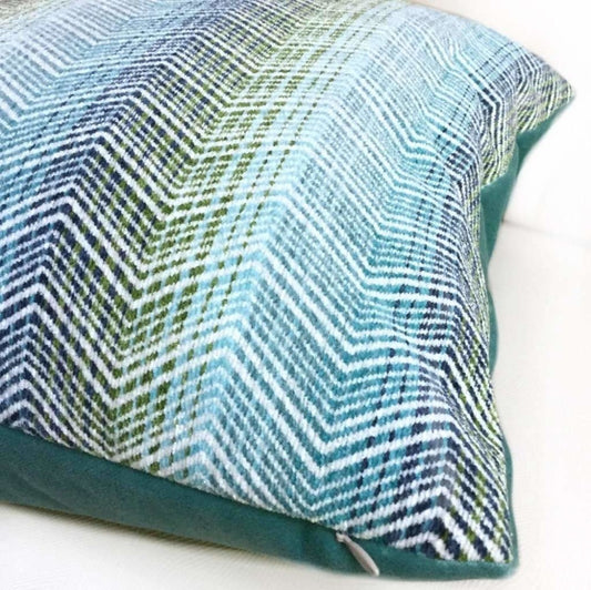 Eileen Boyd Designer Ombre Chevron Zig Zag Aqua Blue Chenille Velvet Pillow Cover