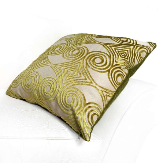 Lime Green Gold Beige Cut Velvet Scrollwork Geometric Pillow Cover