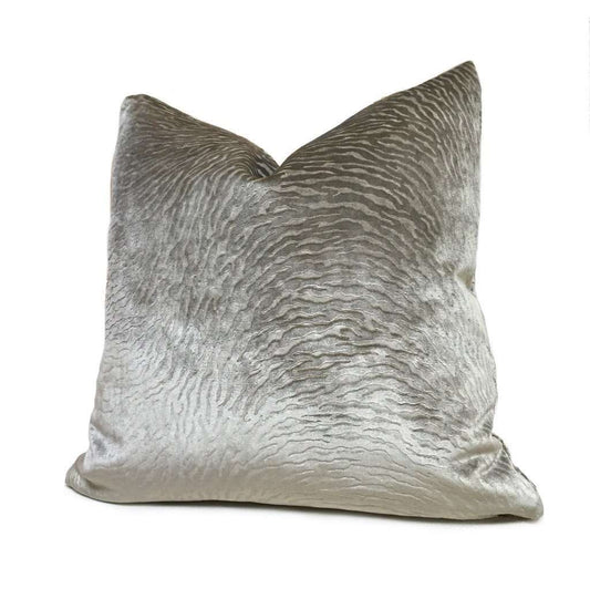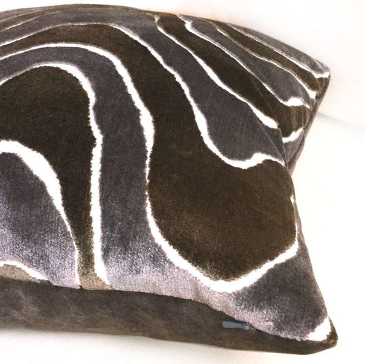 Robert Allen Lush Wave Mica Gray Brown Italian Cut Velvet Pillow Cover