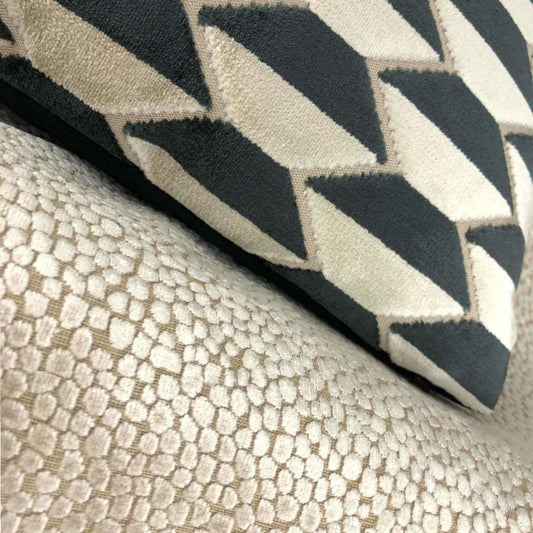 Robert Allen Velvet Geo Pearl White Pillow Cover (Fabric by the Yard available)