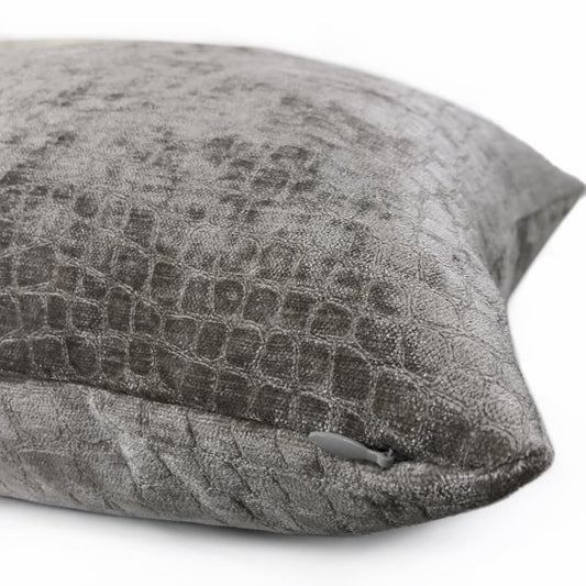 Medium Gray Crocodile Alligator Pattern Velvety Chenille Pillow Cover