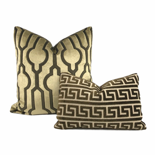 (CLEARANCE) Robert Allen Circle Trellis Mink Brown Cut Velvet Pillow Cover