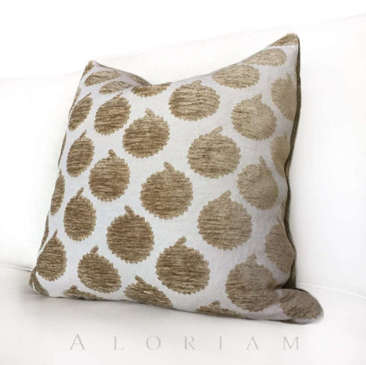 John Robshaw Designer Jama Beige Velvet Dots Pillow Cover