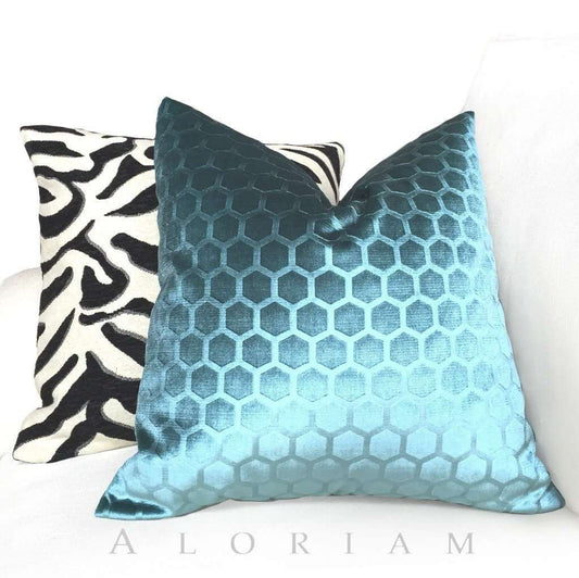 Robert Allen Soft Hex Cove Teal Green Geometric Hexagon Velvet Pillow Cushion Cover
