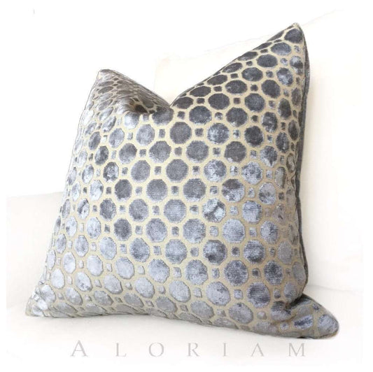 Robert Allen Velvet Geo Gray Cut Velvet Pillow Cover