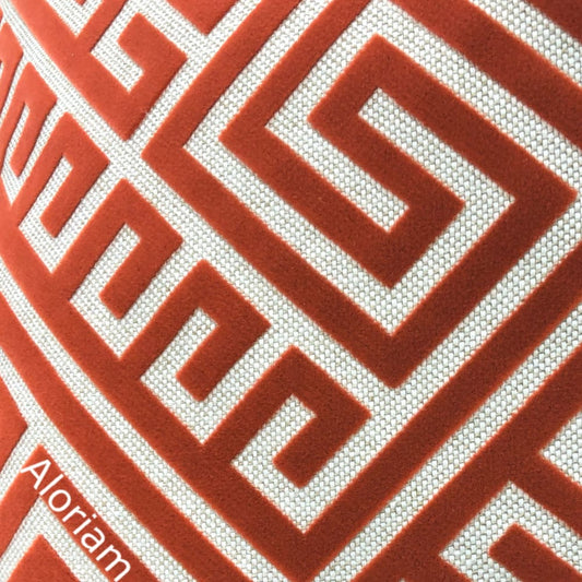 Thebes Orange Beige Greek Key Velvet Pillow Cover (BACKORDER)