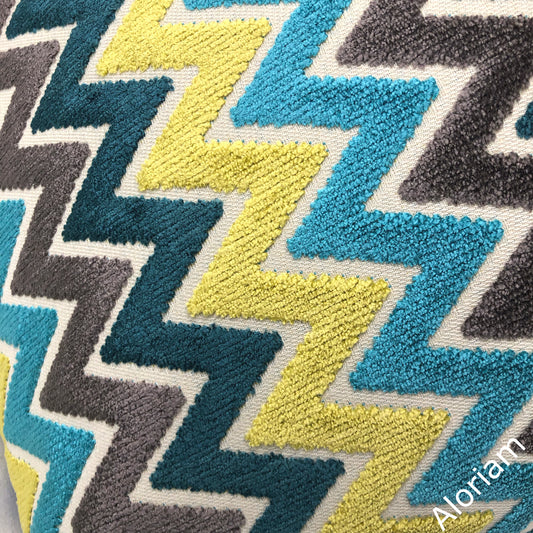 Jeremy Teal Blue Yellow Turquoise Charcoal Chevron Velvet Pillow Cover (Fabric by the Yard available)