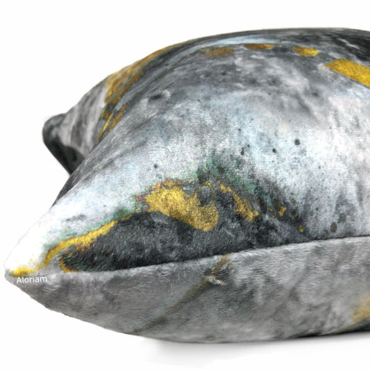 Gaia II-A Earth Minerals Gray Gold White Multicolor Microfiber Velvet Pillow Cover