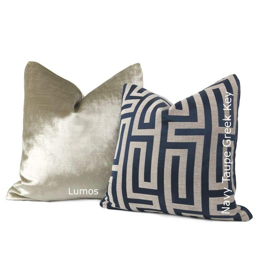 Olympia Marine Blue & Gray Greek Key Geometric Velvet Pillow Cover