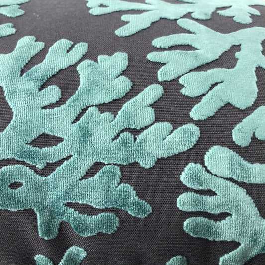 (CLEARANCE) Del Mar Aquamarine Gray Coral Reef Velvet Pillow Cover