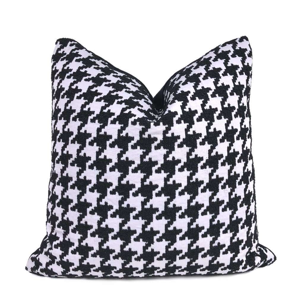 (CLEARANCE) Lyndon Black & White Houndstooth Chenille Pillow Cover