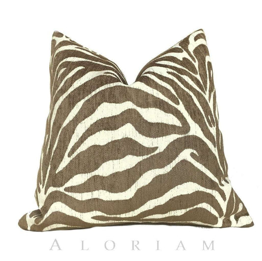 Ethan Allen Large Animal Stripe Zebra Tiger Brown Cream Pillow Cover