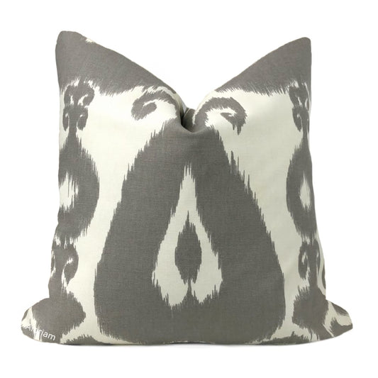 Gray Creamy White Large Scale Ikat Ethnic Cotton Print Pillow Cover
