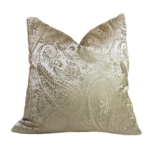 Kravet Blue Green Cream Paisley Floral Pattern Pillow Cushion Zipper Cover