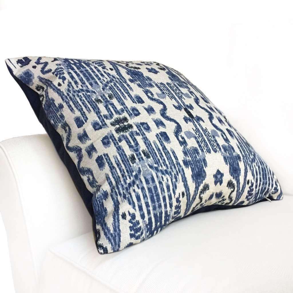 This Ikat print pillow cover made from a blue and beige Lacefield designer fabric is perfect for any decor! Pattern will be symmetrically placed.