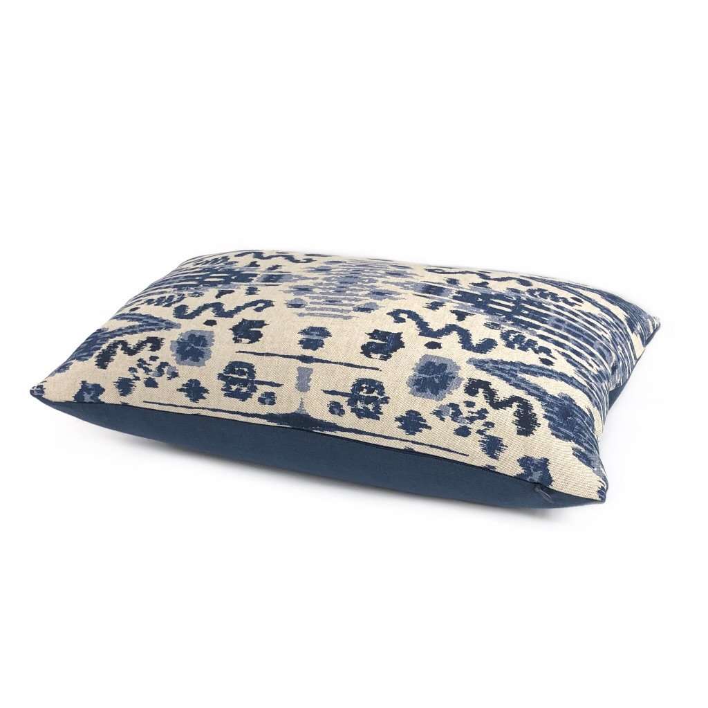 Mumbai Indian Blue Beige Ikat Ethnic Cotton Print Pillow Cover (Lacefield Designs fabric) FABRIC BY THE YARD AVAILABLE