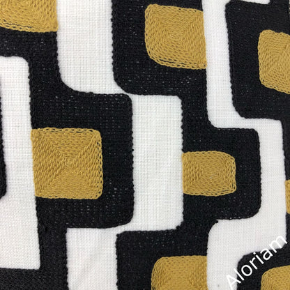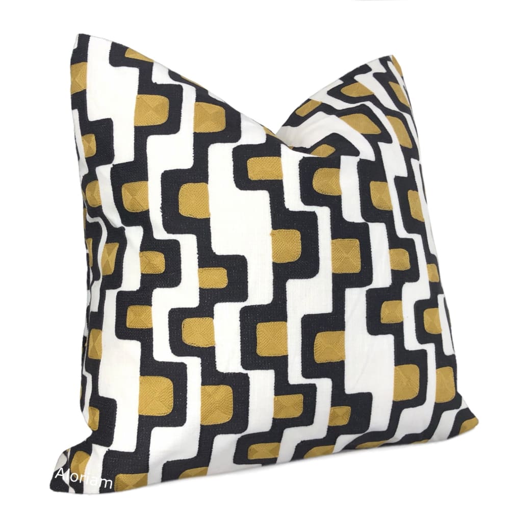 Aldo Black Gold White Mid-Century Modern Embroidered Pillow Cover