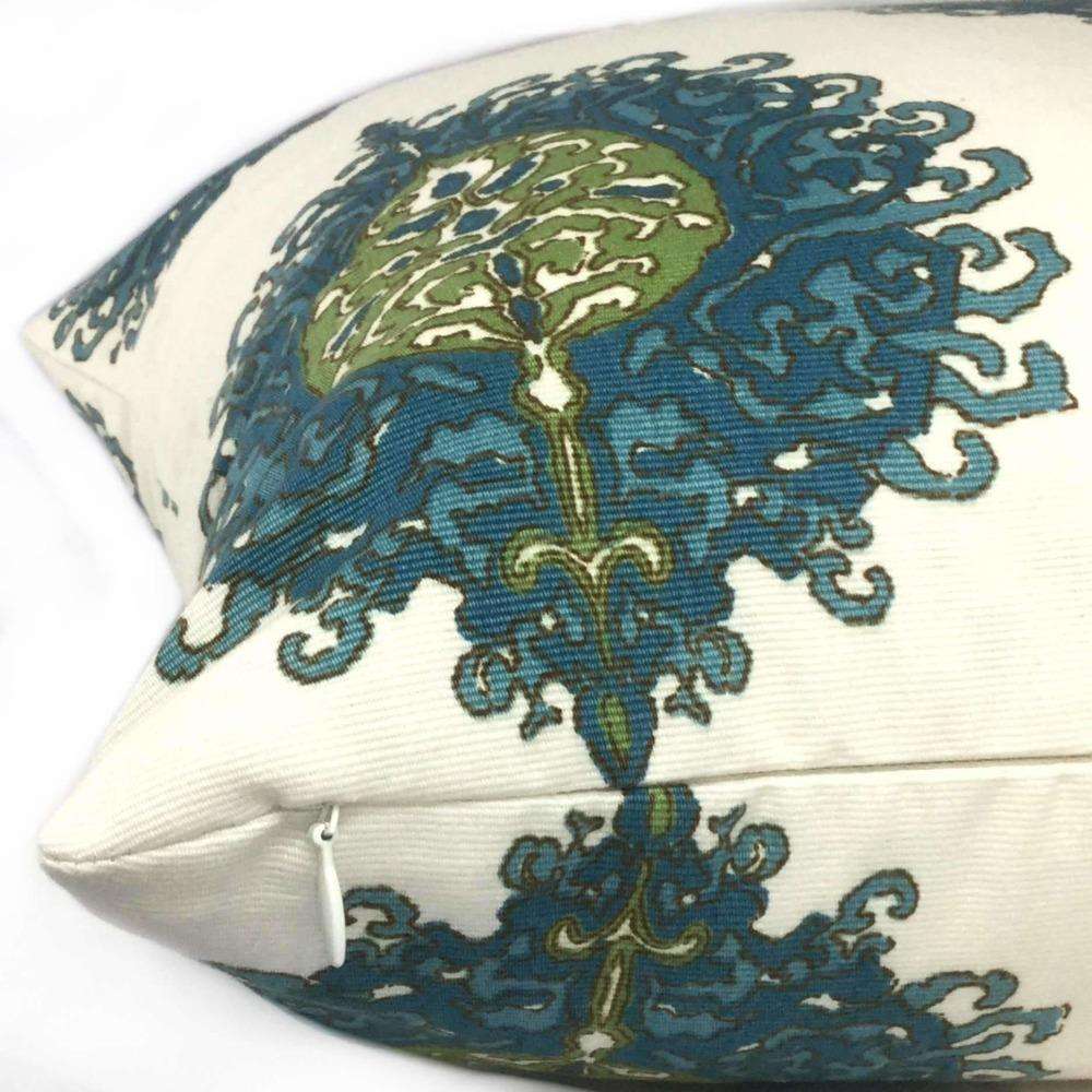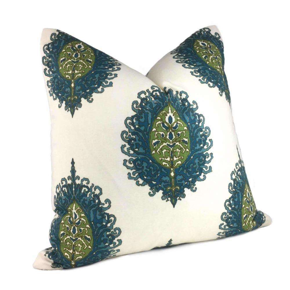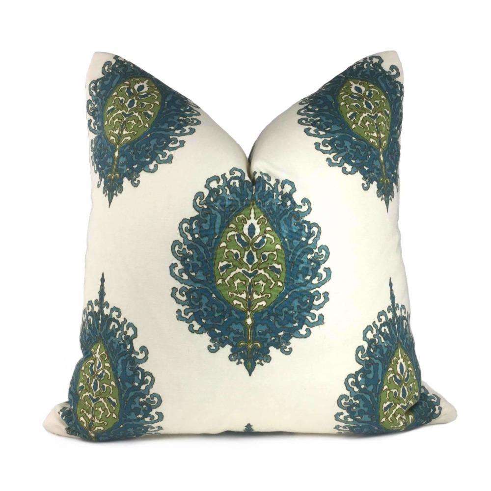 Alfred Shaheen Westminster Blue Green Cream Paisley Medallion Pillow Cover