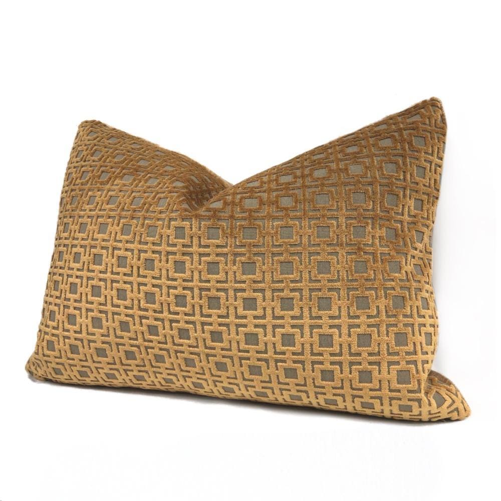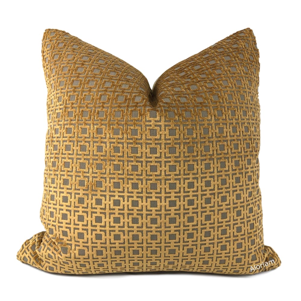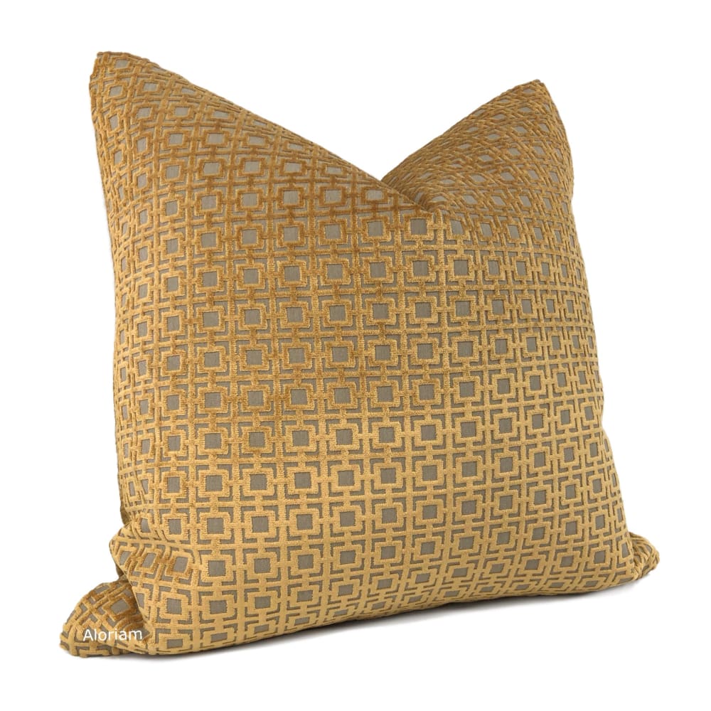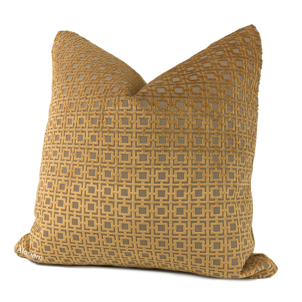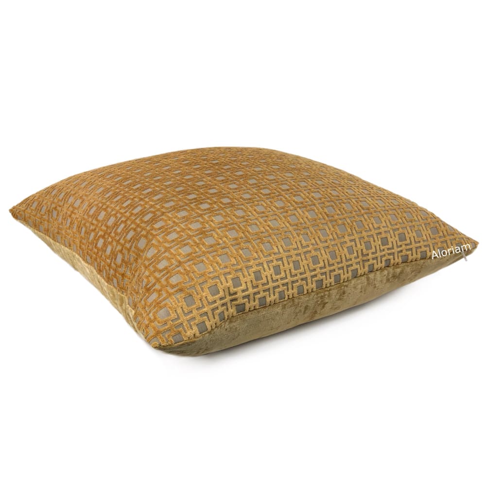 Quattro Amber Gold Geometric Square Lattice Cut Velvet Pillow Cover