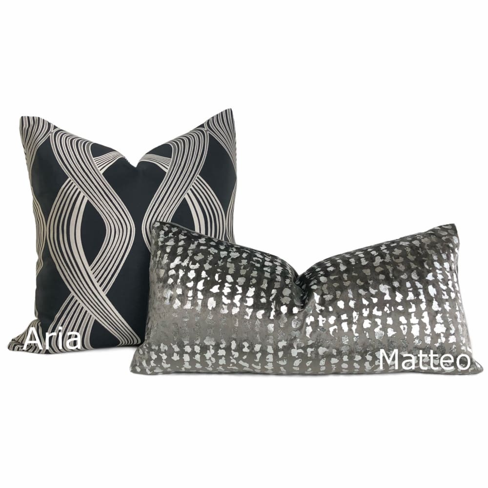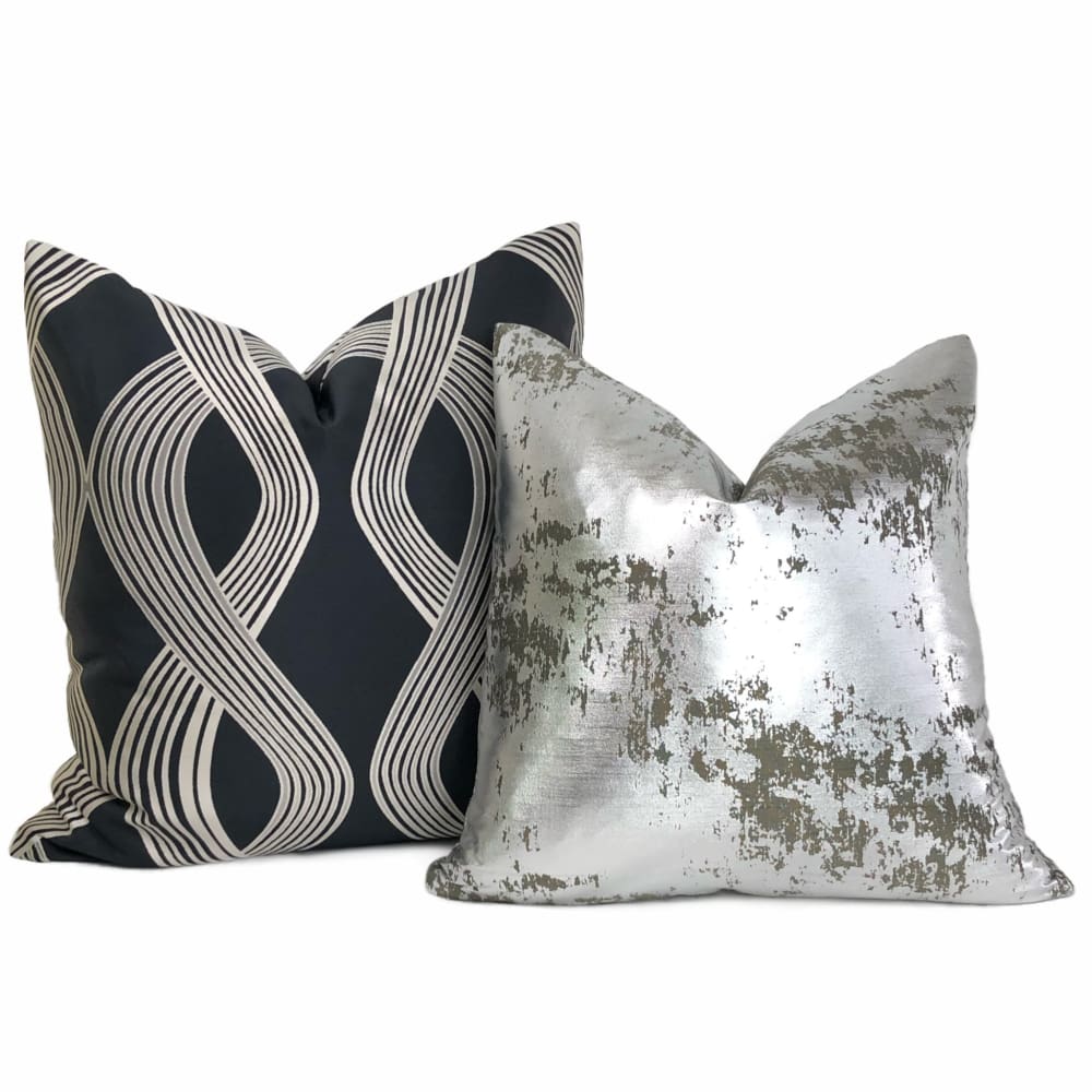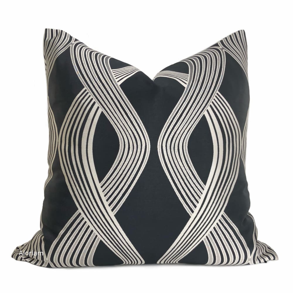 Aria Charcoal & Silver Modern Ribbon Twist Pillow Cover